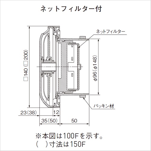 風向調整角型レジスター150F ネットフィルター付
