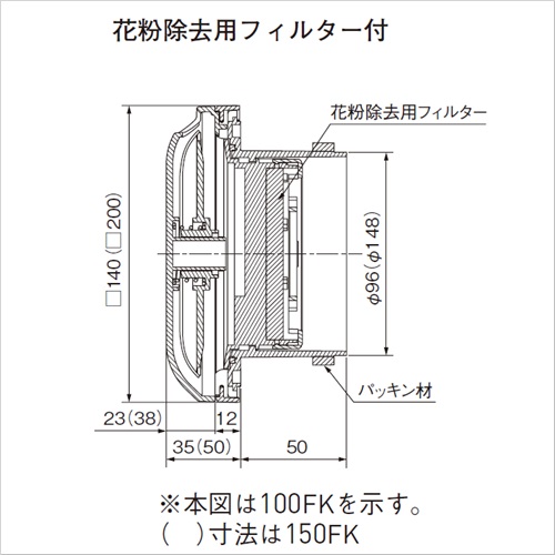 風向調整角型レジスター150FK 花粉除去用フィルター付