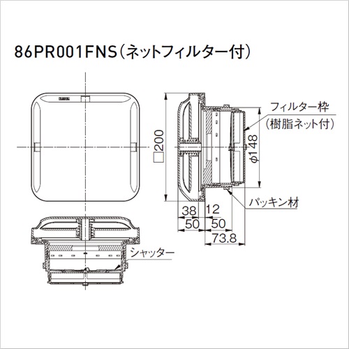 [適用パイプ]キョーワ150(内径φ152)[仕様]ネットフィルター付 [色]シルバーグレー [材質]ASA 購入に関する注意事項 特長 ・3方向の開口部があるカバーの向きを自由に変えることができます。 ・レンジファンの運転時に室内外に生じる圧力差によって作動します。 ・強風時など常に閉じておきたい場合は、カバー裏側の風量調整板を回転することによって閉じることができます。(レンジファン運転時は必ず開けてください。) ・風量調節機構付。 ・性能を効率よく発揮させるため、屋外フードにはV15FS、8620SHEのご使用をお勧めします。 ・風向調整角型レジスターと同一デザインなので、部屋に統一感が生まれ美しい室内空間を提供できます。 ご注意 ・大量の空気を室内に取り込むことにより、製品の音鳴りや、雨の侵入が考えられるため、屋外フードにはV15FS、8620SHEをお勧めします。(防音フードやその他の屋外フードを検討される場合、別途ご相談ください。)