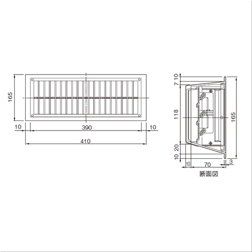 住宅の基礎に取付ける床下換気孔です。形状記憶合金が床下の温度を感知して、温熱環境を自動的にコントロールし、暖房費を抑えます。 ♯5ネット付きです。 12℃以下で自動で閉じ、18℃以上で自動で開きます。 [サイズ]410x175x83mm [本体重量]700g [材質]AES ●有効換気面積:全開時300平方センチメートル 購入に関する注意事項