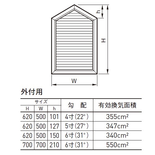 [色]シルバー(S)、ブロンズ(BN)、アイボリー(WI)、ブラック(BK)、ステンカラー(STN)、ダークブロンズ(DB)[品番/呼称]K5568 V6(S,BN,WI,BK,STN,DB) 620×500 [サイズ]H:620mm、W:500mm、h:150mm [重量]3.1kg [材質]アルミ ●勾配:6寸(31°) ●有効換気面積:340センチ平方メートル 購入に関する注意事項 ご注意 色をご指示ください。