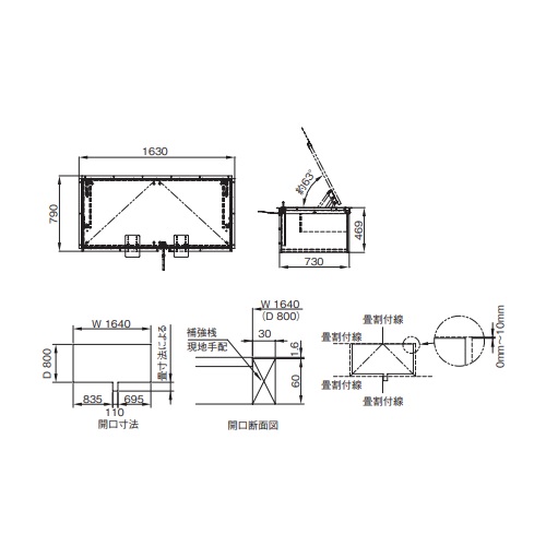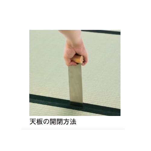 [品番/呼称] NTB-165G[サイズ] H469mm、W1630mm、D790mm [重量] 45kg [材質] 内装:プリント合板(白)、外装:オレフィン合板 [開口寸法] W1640mm、D:800mm [収納容量] 約350L 購入に関する注意事項 特長 ・和室の畳下に畳一枚分の収納スペースができます。複数設置すれば、大容量の収納が可能です。 ・関東間、中京間、関西間にも取付け可能です。畳の厚さが55mm以上の場合は開閉の際畳下に手が入れにくい場合があります。 ・ガスダンパー仕様のため、軽い操作で天板の開閉が可能です。 ・畳間に畳下開閉カード部材を差し込みロック解除を行うため商品本体取付以外の工事が必要ありません。 ・特許取得済です ご注意 ・畳が開閉するため、収納庫上部の畳の納まりを若干緩めに採寸し、設置してください。(目安は名刺の厚みの隙間です) ・畳割付線より開口を決めてください。畳割付線と後板側の開口部とのクリアランスは、0 〜 10mm確保してください。次に、30×60の補強桟(現地手配)を取付けてください。左右の畳割付は均等にしてください。 ・商品はスタイロ畳対応品です。本畳などの重量のある畳をご使用したい場合は、別途ご相談ください。 ・納期:ご確認ください。