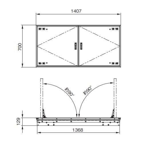 [品番/呼称] NFH-140L2HA[サイズ] H129mm、W1407mm、D700mm [開口寸法] W1392mm、D685mm [材質] 内装:プリント合板(白)、外装:ラワン合板、枠:アルミ(アルマイトブロンズ) [重量] 15kg 購入に関する注意事項 特長 ・天板が自立するので、荷物の出し入れが容易です。 ・トルクダンパー仕様の為、軽い操作で天板の開け閉めが可能です。 ご注意 ・12mm、15mmのフロア材対応(現地手配)になっております。現場確認をお願い致します。 ・12mmのフロア材をご使用の場合は、商品同梱の2.5mm厚の調整板をご使用ください。 ・15mmのフロア材をご使用の場合は、現地での調整が必要になる場合があります。 ・クッションフロア材の場合は、総厚が34.5mmになるよう現地で調整板(別途)をご用意ください。 ・納期:ご確認ください