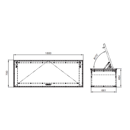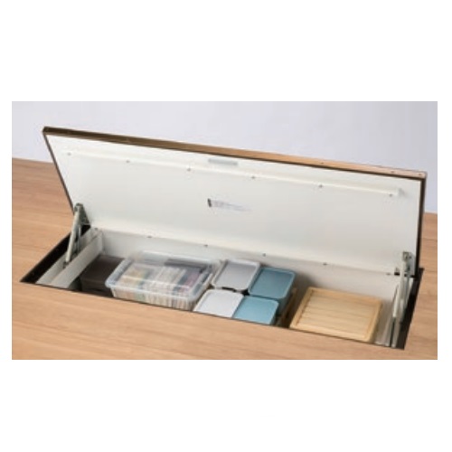 [呼称] NFB-180GA[サイズ] H484mm、W1800mm、D700mm [開口寸法] W1785mm、D:685mm [重量] 60kg [材質] 内装:プリント合板(白)、外装:ラワン合板、枠:アルミ(アルマイトブロンズ) [収納容量] 約360L 購入に関する注意事項 特長 ・天板を取り外すこと無くご使用頂けるため、フロア材を傷付ける心配がありません。 ・リビング、寝室、子供部屋、又は廊下等の床下を有効活用した大容量収納スペースが確保出来ます。 ・ガスダンパー仕様の為、軽い操作で天板の開閉が可能です。 ・特許取得済です。 ご注意 ・12mm、15mmのフロア材対応(現地手配)になっております。現場確認をお願い致します。 ・12mmのフロア材をご使用の場合は、商品同梱の2.5mm厚の調整板をご使用ください。 ・クッションフロア材の場合は、総厚が34.5mmになるよう現地で調整板(別途)をご用意ください。 ・15mmのフロア材をご使用の場合は、現地での調整が必要になる場合があります。 ・納期:ご確認ください。