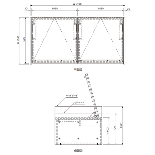 ガスダンパー式収納付き仮眠ベッド 収納2連タイプSKB-210G2H