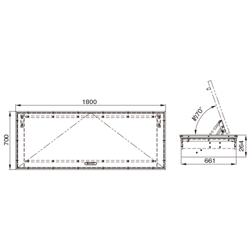 [呼称] NFH-180GA[サイズ] W1800×D700×H264mm [開口寸法] W1785×D685mm [重量] 36kg [材質] 内装:プリント合板(白)、外装:ラワン合板、枠:アルミ(アルマイトブロンズ) 購入に関する注意事項 特長 ・地下室、床下への出入り用としてご使用いただけます。 ・開口が大きいため、床下のスペースを最大限に有効活用できます。 ・天板が自立するので、荷物の出し入れが容易です。 ・天板を取外すことなくご使用いただけるため、フロア材を傷付ける心配がありません。 ・ガスダンパー仕様の為、軽い操作で天板の開閉が可能です。 ご注意 ・製品は12mm、15mmの床仕上げ材対応(現地手配)となります。現場確認をお願い致します。 ・12mmの床仕上げ材をご使用の場合は、同梱の2.5mm厚の合板をご使用ください。 ・クッションフロア材の場合は総厚が34.5mmになるよう現場で調整材(別途)をご用意ください。 ・納期:ご確認ください。