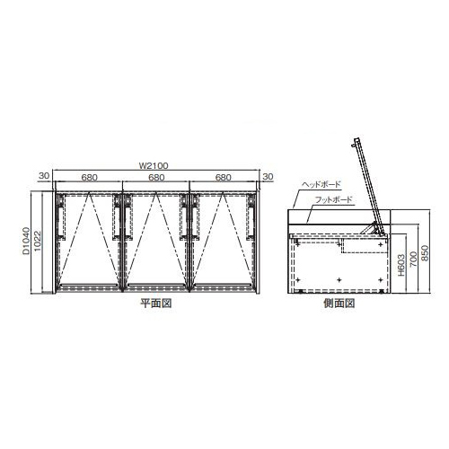ガスダンパー式収納付き仮眠ベッド収納3連タイプ SKB-210G3H