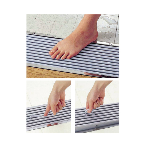 [色]ライトグレー[品番/呼称]HRAT-20L600 [サイズ]L596mm、W196mm、D80mm [重量]2.6kg [材質]軟・硬質塩ビ 購入に関する注意事項 特長 ・表面が軟質樹脂製でやわらかく、段差もなく納まるので、素足や車椅子等が通る場所には最適です。バリアフリー対応商品として浴室の段差解消にご使用いただけます。 ・浴室・トイレなど排水が必要な場所に多目的にお使いいただけます。 ・表面がやわらかいため、滑りにくく素足でも安全です。また、すき間が6mm以下のため足の指が入らず、車椅子等もスムーズに通れます。 ・表面は抗菌・防カビ仕様です。グレーチング本体は軽量で、取外具が付いているので、お手入れが簡単です。トラップの部品も取外せます。 ・用途に応じて、縦引トラップ・横引トラップ・縦引トラップ+防水マスとしてお使いいただけます。 ご注意 ・幅違いは、お問い合わせください。L寸法は4000mmまで製作可能です。流出量が多い場合はトラップ数を追加することをお勧めします。寸法によっては、グレーチングが分割となります。 ・本体BOXには勾配はついていません。 ・納期:ご確認ください。