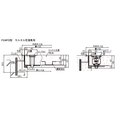床点検口 アンダーハッチ FSMPD-45KH 防水・防臭型モルタル専用 鍵付