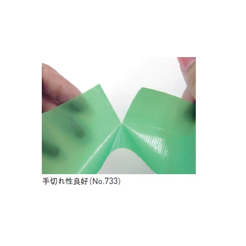[材質]PEクロス[サイズ]50mm×25m [テープ厚]0.11mm [粘着力(N/10mm)]2.1 [色]緑 購入に関する注意事項 特長 ・耐熱性に優れたPETクロス製です。 ・抜群の手切れ性です。 ・切り口がキレイです。 ・テープの引き出しが軽い。 ・各種環境において糊残りしにくい。 ご注意 ・ 電気絶縁での使用は避けてください。段ボール封、荷造り梱包には適しておりません。 ・ 白木等のムク材・大理石等の石材・柔らかい塩ビ素材への使用は避けてください。その他の素材に関しては、貼る面の材質(天然素材等)や表面状態(表面強度の弱いもの)によって、糊残り、変色や貼り付け面を傷めることがあります。