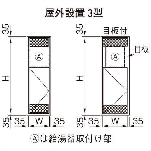 [サイズ]H1900mm、W600mmまで[重量]19kg [材質]溶融亜鉛メッキ鋼板 [仕上げ]サッシプライマー [吊り元]右、左 購入に関する注意事項 ・納期:受注生産となります。 ・打合せ、発注のための必要事項は下記の通りです。 ・現場名 ・給湯器のメーカー名、機種名 ・吊元、数量 右吊元____枚、左吊元____枚 ・金物の指示がない場合は、下記制定品になります。 3インチ面付丁番 451-251 ワンタッチ平面ハンドルMKS-05 鍵無 ご注意 ・W寸法は、給湯器のメーカー機種により異なります。