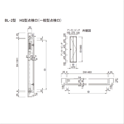 パイプシャフト用ドア BL-2型 HQ型点検口