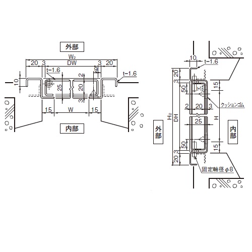 ワンタッチ平面ハンドル付(鍵付)です。 [サイズ]H600×W600mm [外寸法]H2:670×W2:670mm [本体重量]7.3kg [材質]溶融亜鉛メッキ鋼板 [仕上]サッシプライマー [吊元]右 購入に関する注意事項 特長 ・枠込み25mmタイプです。 ・ワンタッチ平面ハンドル付(鍵付)です。 ご注意 ・左吊元使用の場合は点検口を上下逆にし、次に平面ハンドルをはずして反対に取り付けます。 ・ワンタッチ平面ハンドルMKS-05K 小鍵のみ(451-255)もお求めになれます。 ・扉取外し可能タイプ(脱着タイプ)も別注にて製作可能です。詳細はお問い合わせください。 ・壁点検口以外の使用は避けてください。(ストッパーや補強は付いておりません) ・もし雨掛りに設置する場合は、庇等を設けてください。