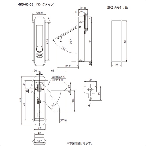 従来のようなビス止めが不要です。ワンタッチで簡単取付、やさしいフォルムで安全設計。 扉板厚は1.2mm、1.6mmに対応します。 止め金を裏返すことにより、左右の切り替えができる兼用型です。 キ-1本付き(鍵付の場合) [本体重量]210g [材質]ZDC [仕上]サチライトクロムメッキ ●備考:左右兼用 購入に関する注意事項