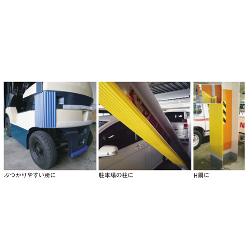 複雑な形状をしたコーナーの衝撃吸収材として最適です。工事車両のコーナーや複雑な形状の柱にご使用いただけます。 専用両面テープ(別売)を使えば、しっかりと貼り付けできます。 [サイズ]W1200mm、L1800mm、t9mm [本体重量]1900g [材質]EVA樹脂 購入に関する注意事項 画像は代表画像(イエロー)です。