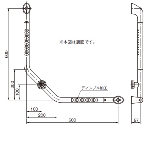 ・取付部がスマートなデザインです。・手すり握り部内側はディンプル加工になっています。 ・左右兼用です。 [色]ベージュ [品番/呼称]52型6060 BU [サイズ]600mm×600mm [重量]1.4kg [付属部品]SUS六角コーチボルト8×40:1本 スプリングワッシャー:1枚 ワッシャー:1枚 (中間ブラケット用のみ) [材質]SUS304・軟質塩ビ [仕上げ]軟質塩ビ被膜 購入に関する注意事項 ・納期:お問い合わせください。 ご注意 ・取付けには、100mm程度の長いビットをご使用ください。