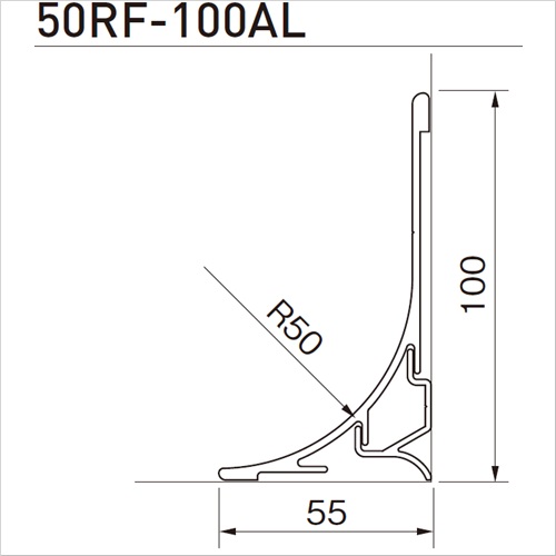 [品番/呼称]50RF-100AL[サイズ]100mm×55mm×3000mm [付属部品]・スチール十字穴付ナベドリルネジ3.5×16:4本 (どの定尺品にも付属) [材質]アルミ [仕上げ]アルマイトシルバー・クリアー塗装 購入に関する注意事項 特長 ・巾木にRをつけることで、清掃しやすくし清潔に保ちます ご注意 ・定尺寸法での出荷となります