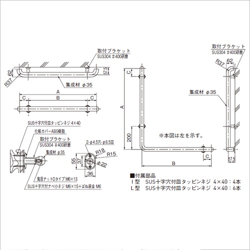 楕円形のブラケット座金は取付ネジが打ち易く、施工性が良好です。BL認定品です。 [サイズ]A600mm、B460mm、C70mm [本体重量]760g [付属品]I型 SUS十字穴付皿タッピンネジ4×40:4本 [材質]集成材 [仕上]ウレタン塗装 ●耐荷重:60kgf ●備考:ブラケット:SUS304 【ご注意】室内用手すりです。浴室などの湿気の多い場所への設室内用手すりです。浴室などの湿気の多い場所への設天然木集成材のため、木目や色合いがものにより異なります。天然木は年数を経るごとに木材固有の色に変化します。本製品はホルムアルデヒド発散建築材料F☆☆☆☆の規程に適合します。施工時に使用する接着剤・塗装など(仕上げ材及び下地材に使用する合板類)については、低ホルムアルデヒ地材に使用する合板類)については、低ホルムアルデヒドのものか含まないものをお選び下さい。 購入に関する注意事項