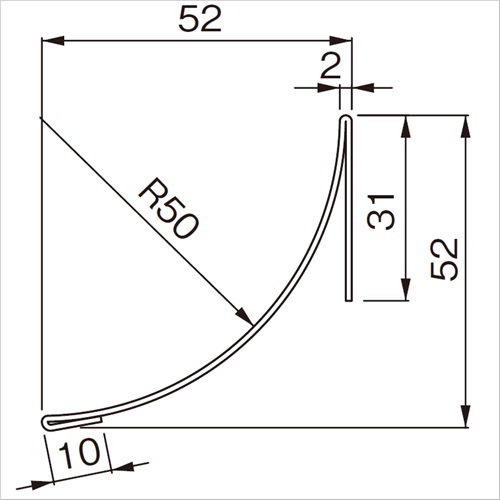 ステンレスR巾木 50RP-52入C-SUS 入隅(切断品)