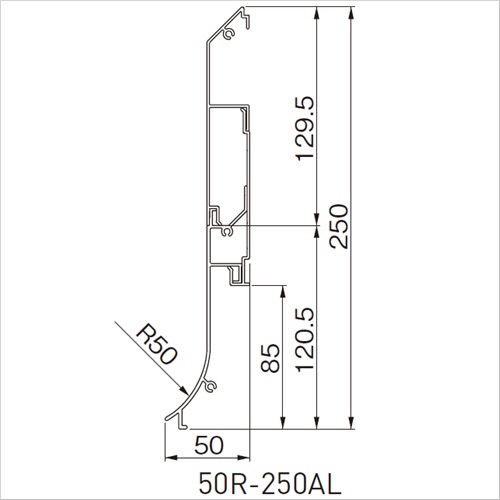 [品番/呼称]50R-250出J-AL[サイズ]57mm×57mm×250mm [材質]ナイロン [仕上げ]ライトグレー色 購入に関する注意事項 特長 ・巾木にRをつけることで、清掃しやすくし清潔に保ちます