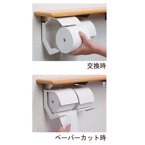 [色]パステルアイボリー[サイズ]表記による [重量]2.7kg [材質]本体:ABS樹脂・ウレタン樹脂 手すり: ハードメイプル・ADC 棚板: ハードメイプル・SUS304 購入に関する注意事項 特長 ・棚板の奥行きは130mmで、しっかり手をつくことができます。 ・手すりの取付け位置は自由に設定できます。 ・上フタを上げた際、フタが固定されるので、片手で簡単にペーパーの交換ができます。 ご注意 ・木製高級インテリアバーは手すりがディンプルタイプもございます。お問合せ下さい。(別途)