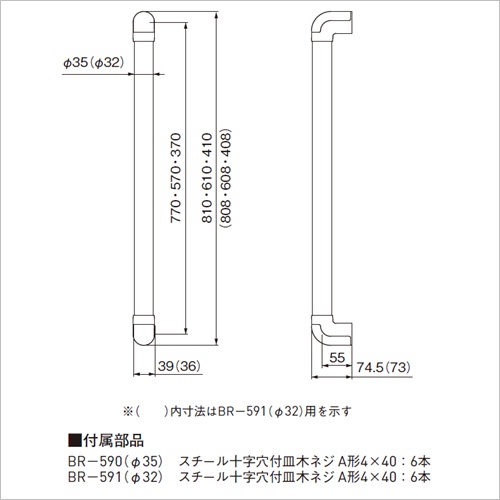 間柱に取付け可能です。[色]シルバー・ライトオーク [サイズ]Φ32mm×800mm [本体重量]690g [付属品]BR-591(φ32)スチール十字穴付皿木ネジA形4×40:6本 [材質]タモ集成材・亜鉛合金 ●耐荷重取付ピッチ910以内:120kgf 購入に関する注意事項