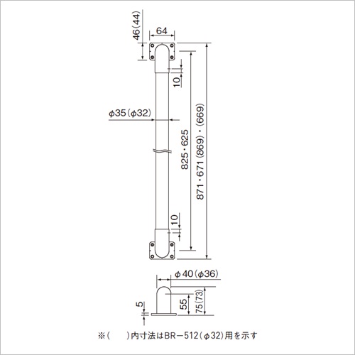 BR-510NはBL認定品です。[色]AG・Mオーク [サイズ]φ35mm×600mm [本体重量]800g [付属品]BR-510N(φ35)スチール十字穴付皿木ネジA形3.5×40:8本 [材質]自然木・亜鉛合金 ●耐荷重取付ピッチ910以内:120kgf 購入に関する注意事項