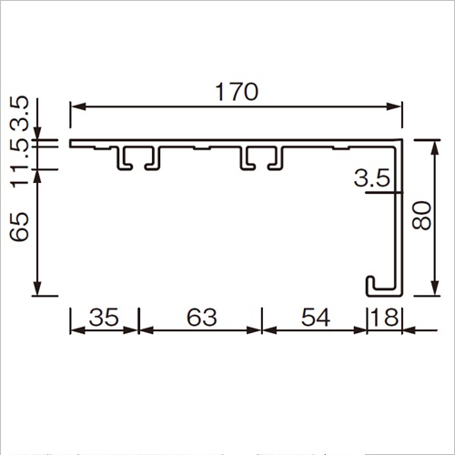 [材質]硬質樹脂[サイズ]W170mm、H80mm [付属部品] ランナー 1レール8個/m ストッパー 1レール2個 購入に関する注意事項 ・色をご指定下さい。 特長 ・ボックス&レールの一体型です。現場での加工がなく、搬入して設置するだけです。 ・住宅のほか、医療福祉関係施設等でもご使用いただけます。 ご注意 ・取付け用の下地があることを必ずご確認ください。 ・色は単色3色よりお選びください。 ・規格長さは1mです。別注で長さを指定する場合は、1mm単位で指示が可能です。長さ4001mm以上は、センタージョイントが別途必要となります。