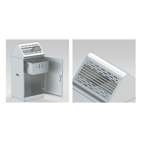 ・屋内外の喫煙所に対応した大型の公共灰皿です。・耐久性のあるオールステンレス製で島置きタイプと壁置きタイプからお選びいただけます。 ・灰受皿は取外しできます。 [品番/呼称]SST-Z-01 [サイズ]H1000mm、W450mm、D400mm、t(本体):1.2mm [重量]28.5kg [材質]ステンレス [仕上げ]ヘアーライン [ご注意] ・灰受皿は取外しできます。 ●容量:9.9リットル 購入に関する注意事項