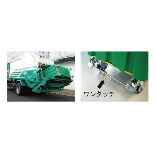・0.7m 3 反転コンテナボックスです。・大型のマンション、公団・都営住宅、施設向きです。 ・多くの傾倒装置付き車両に対応します。 ・キャッチバー寸法は、幅1574×Φ34、高さ685mmです。 ・掃除が簡単な排水キャップ付きです。 ・ワンタッチで固定と解除が可能なイージーストッパーを装備しています。 ・蓋は取り外し式です。 [色]イエロー [品番/呼称]#700F-S(Y) [サイズ]H1047mm、W1574mm、D670mm [重量]49kg [材質]ポリエチレン [ご注意] ・本体と蓋は別売です。 ●許容荷重:280kgf ●容量:700l 購入に関する注意事項