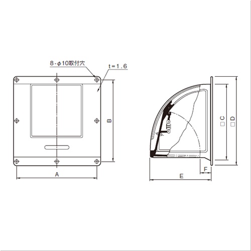 V-14 換気孔 外部用 75型 スルーガラリ 水返し付き WG