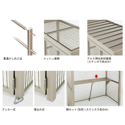 ・高品質・高強度オールアルミ製で幅広い施設に対応するゴミ集積庫です。・設置場所に合わせて選べる2つの扉タイプ(開き戸式と引き戸式)をご用意しています。 ・本体のメッシュ部分では、メッシュ線材が外れない貫通かしめ工法を採用しています。 ・引き戸式では、開閉がスムーズに行なえるように上吊式引き戸を採用しています。 ・オプションで棚セットもご用意しています。 ・管理に便利な市販の南京錠が取付け可能です。 [品番/呼称]LGSAMF-GA2020 [サイズ]開口2000mm、奥行2082mm、高さ2010mm [材質]アルミ押出形材 [ご注意] ・アンカー式(A)か埋込式(U)をご指示ください。呼称の( )にAかUが入ります。 ・アンカー式の場合、必ずアンカー固定して使用してください。 ・屋根形状はメッシュ屋根とアルミ押出形材屋根(積雪荷重1500N/平方メートル )の2種類からご指示ください ・4色(ブラックつや消し、ステンカラー、ブロンズ、アイボリーホワイト)の中からご指示ください。 ・連棟ユニットは基本セットに連結して使用します。単独での仕様はできません。 ・特注サイズも承ります。お問い合わせください。 ・納期:お問い合わせください。 ●容量:6900l 購入に関する注意事項