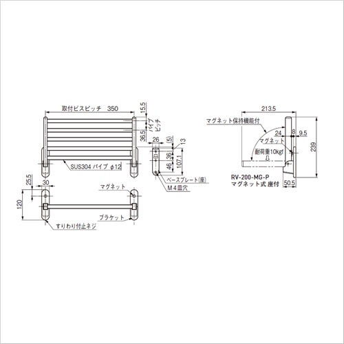 RVシェルフ RV-200-MG-P マグネット式 座付