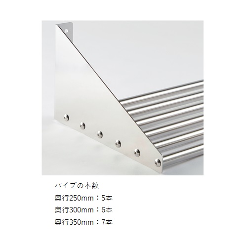 [材質]SUS430[仕上げ]パイプ:研磨、ブラケット:研磨(2B) [サイズ]W900×H180×D300mm×パイプ径Φ19×ブラケット厚t=2 [取付けピッチ]840mm [耐荷重]40kgf 購入の際のご注意 特長 ・業務用として外食産業、弁当店、ラーメン店、居酒屋様などの厨房でご使用いただけます。 ・Φ19パイプとプレートで構成された食器などが収納できるステンレス製の棚です。 ・設置場所や用途により、上下向きを変えてご使用いただけます。 ・設置場所に合わせてサイズをお選びください。 ・SUS430なので磁石が付きます。 ・組立て完成品で出荷いたします。 ご注意 ・耐荷重は目安であり、保証値ではありません。 ・商品名の奥行(D)寸法は、250か300か350のいずれかの寸法を当てはめます。 ・幅(W)方向については、特注でW1800mmまでの製作が可能です。 ・納期:ご確認ください。