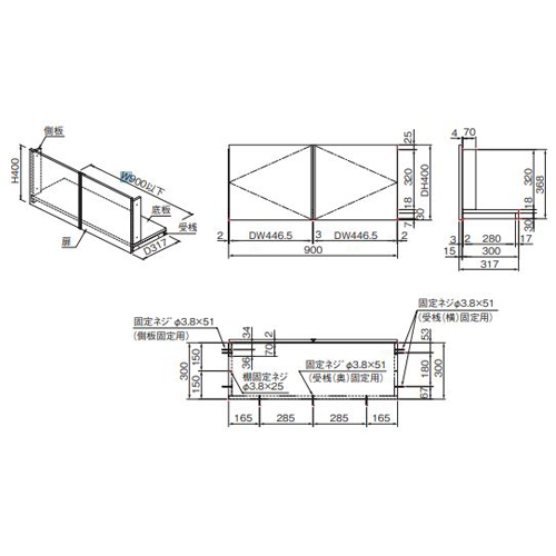 [材質]パーティクルボード・MDF [色]ホワイト [サイズ]H400×W900×D317mm [耐荷重]底板10kg [重量]9kg 購入に関する注意事項 特長 ・トイレのデッドスペースを上手に活用できます。 ・間口に合わせて部材をカットし取り付けるシンプルで便利な収納です。 ご注意 ・対応間口は、900mm以下です。 ・施工前に壁下地の有無を確認してください。 ・詳しい取付けは、設置説明書をご覧ください。 ・納期:お問い合わせください。