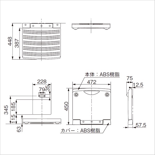 [色]クリアホワイト[品番/呼称]CB13 [サイズ]閉じた時:W472mm×D75mm×H450mm 開いた時:W472mm×D448mm×H63mm [重量]3.6kg [材質]表記による 購入に関する注意事項 特長 ・いろいろ使える便利な着替え台です。既存施設にも設置可能です。 ・床に手を触れずに開閉が可能です。 ・ゆっくり開閉するソフトダウン機構です。 ・ステップ面に滑り止め加工がしてあります。 ご注意 床面にアンカーボルト(別途)等で固定します。