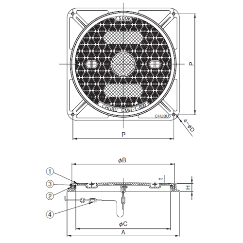 中部 ハイグリップマンホールカバー CMH-1P-600N 鎖付き