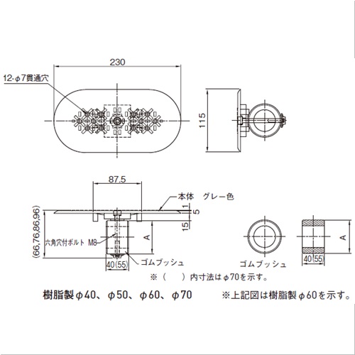 ・コンクリート側溝蓋の手掛け穴を気にせず、安全な通行を確保する手掛け用穴カバーです。・通学路や公共・病院・福祉施設まわりの安全な歩行をサポートします。 ・自動販売機を利用時の小銭落下や、砂利・小石の落下を防止します。 [色]黒 [サイズ]W115mm、L230mm、AΦ50mm [材質]TPEE [ご注意] ・側溝蓋の欠損がひどい箇所、側溝蓋の段差が5mm以上の箇所、自動車の通行量が多い所では、ご使用をお控えください。 ・樹脂(ポリプロピレン)製は歩道専用、樹脂製(TPEE)は歩車道兼用です。 ・手掛け穴のサイズを確認してください。 ・仮締め後、穴にセットして、六角レンチにて時計方向にボルトを回し、締め過ぎに注意して本体を固定してください。 ・運搬諸経費は別途お問い合わせください。 ●手掛穴適用幅:50mm〜58mm ●備考:歩車道用 購入に関する注意事項