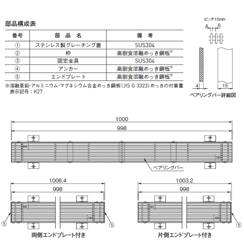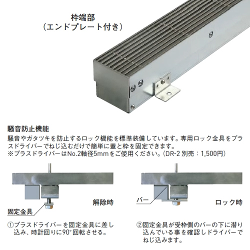[摘要荷重]T-2・歩道用[サイズ](H)90mm [重量]5.2kg 購入に関する注意事項 ・代表画像です。 ・枠端部エンドプレートはオプション(別途有料)となります。 ・標準品以外は、割増価格となります。(別途見積り) ・詳細は担当営業までお問い合わせください。 概要 ・建物出入口部や周囲などで比較的多くの排水量を必要としない場所にお使いいただく高耐食溶融めっき製溝付グレーチング蓋です。 ・施工後はスリムで美しいスリットのラインが舗装面を彩ります。 ・蓋の表面にすべりにくいローレット加工が施してあります。また蓋のすきまを6mmに設定しており、視覚的に訴える安心感と確かな歩行感があり歩行者にも優しい安全な溝蓋です。 ・蓋はロック機能付きです。 ・適用荷重はT-2・歩道用です。