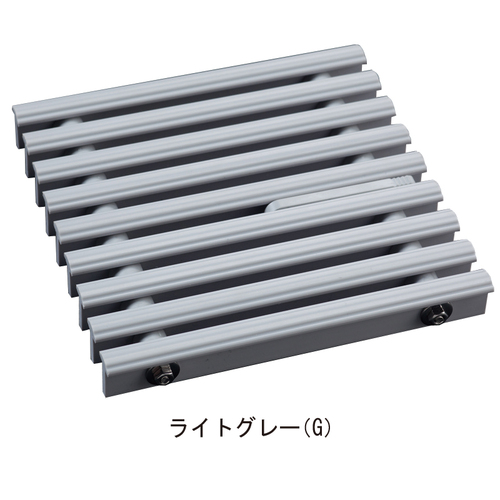 [色]ライトグレー[サイズ]幅151、高さ25、長さ999、溝幅100、枠外160mm [重量]1.9kg [耐荷重]150kgf 購入に関する注意事項 特長 ・上面が軟質樹脂製でやわらかく、段差もなく納まるので素足や車椅子等が通る場合には最適です。(硬・軟質塩ビ使用) ・上面がやわらかいため、滑りにくく安全です。また、すき間も6mm以下のためお子様の素足でも安心です。車椅子・ストレッチャー等もスムーズに通れます。 ・グレーチングの目の向きと水の流れが垂直なため、水切り性能は抜群です。(逆目タイプ) ・抗菌・防カビ仕様です。 ・取外し具付きのためメンテナンスも簡単です。 ・受枠はLアングルで、L字形・T字形等さまざまな形状に対応できます。 ・浴室、シャワールーム、プール、バルコニーなどの排水溝に使用可能です。 ご注意 ・受枠と本体のすき間は片側2mm(両側で4mm)以内のこと。 ・色は、ベージュ(B)、ライトグレー(G)、ホワイト(S)、ピンク(P)、ブルー(A)、ダー クグレー(D)、ウッド(M)、ブラウン(C)、ブラック(K)の9色よりお選びください。 ・斜め加工も製作できます。お問い合わせください。 ・ご注文の際は、必要寸法をご指示ください。都度お見積り致します。 ・均等割、割り付け指定は10%UPの価格となります。 ・特寸幅の対応可能です。価格はお問い合わせください。 ・納期:ご確認ください。