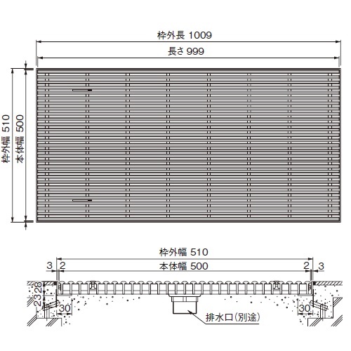 [色]ピンク[サイズ]幅500mm、高さ25mm、長さ999mm [重量]5.2kg 購入に関する注意事項 特長 ・浴室出入口、脱衣室、プール更衣室、足洗場、玄関用マットとして様々な場所にお使いいただけます。(屋内用) ・上面が軟質樹脂製なのでステンレスのように冷たくなく、やわらかいので滑りにくく安全です。 ・すき間は6mm以下のため、素足でも安心、お子様にも安心です。車イス・ストレッチャー等もスムーズに通れます。 ・抗菌・防カビ仕様です。取外し具付きですのでメンテナンスも容易です。 ご注意 ・直置き専用です。溝蓋としての使用はできません。 ・オーダー寸法は、最大本体幅999×長さ1305まで製作可能です。最小本体幅は317です。製作できない幅寸法がありますので、お問い合わせください。