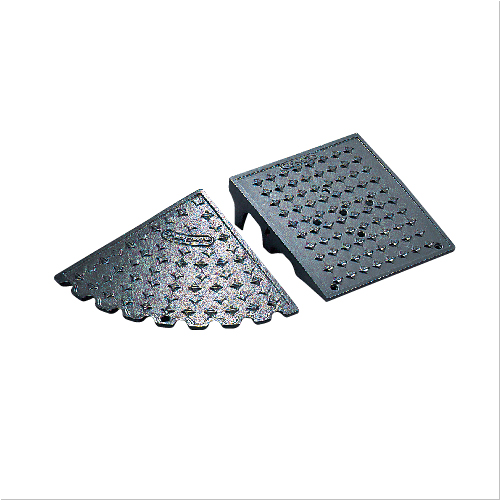 [サイズ]長さA335mm、出幅B335mm、高さH95mm[本体重量]4.7kg [付属品]ユニクロ製連結用ボルト(φ10)、ナット、ワッシャー [材質]ダクタイル鋳鉄(球状黒鉛鋳鉄) [仕上]メラミン焼付塗装 [耐荷重]8t 購入に関する注意事項 特長 ・粘りと弾力性に富んだダクタイル鋳鉄製。割れたり変形せず半永久的に長持ちします。 ・焼付塗装仕上げにより、錆びにくく色落ちしません。 ・ノンスリップの表面加工で、雨の日にも滑りにくくなっています。 ・あらゆる段差に合わせた各種サイズが豊富に揃っています。 ご注意 ・8t用、サイレント(ゴム製)のものは、キャタピラ、ブルドーザー、ダンプカーでのご使用はご遠慮ください。 ・サイレント(ゴム製)のものは多少の伸縮の恐れがありますので、ズレ止め固定は1カ所にて、またきつ過ぎる連結固定は反りの原因となります。 ・私道以外での設置はご考慮ください。 ・サイドコーナーSA-100は左右兼用になっています。