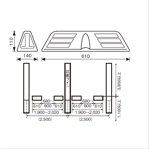 アスファルト下地:適用車両2tトラックまで ネジ棒で基礎にしっかり固定します。商業施設等の取付けをより確実にするために、アスファルトにアンカードリルで径25mm深さ100mmの穴を開けます。 グラウト材を流し込み、M12ネジ棒を差し込み、固定後、増し締めしてください。 但し、ボルトを強く締めすぎるとネジ棒が上がってきます。 ※グラウト材1kgで、4本取付けできます。 [サイズ]110mm×140mm×610mm [本体重量]3.0kg [付属品]スチールM12ネジ棒:3本 ナットワッシャー:各3組 [材質]合成樹脂 ●備考:アスファルト下地用 【ご注意】グラウト材は流し込み式無収縮モルタルなどの使用が一般的です。特殊接着剤やケミカルアンカーなどを使用する場合は穿孔する径・深さが変わります。 購入に関する注意事項