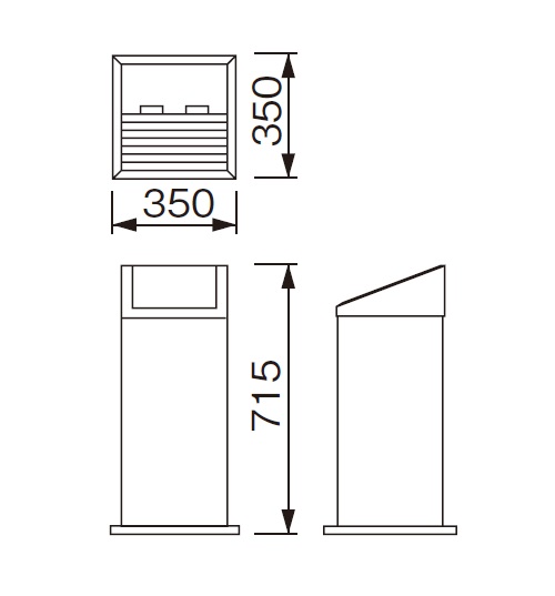 [材質] 本体:スチール、フレーム:ADC、灰皿ボトル:アルミ[仕上げ] 本体:メラミン焼付塗装、フレーム:焼付塗装、灰皿ボトル:アルマイト [サイズ] H715mm、W350mm、W350mm [容量] 9L [重量] 9.9kg 購入に関するご注意 ご注意 ・アンカー(別途)止めも可能です。 ・灰皿ボトルには、水抜き用の穴があります。 ・納期:ご確認ください。 特長 ・異物投入防止構造を採用した、屋外用灰皿です。 ・異物投入防止構造:金属プレートにより、下部空間に物を入れることができない構造です。