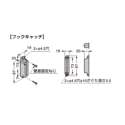 フックキャッチのみです。 [サイズ]87x19x20mm [材質]ABS樹脂 [色]ダークグレー 購入に関する注意事項 ご注意 本体とフックキャッチは、使用例のように向かい合わせに取り付けてください。ベルトが本体やフックキャッチに対して折れ曲がった状態で使用すると、折れた部分が擦れ、ほつれたり擦り切れたりする原因となります。 付属品 スチール十字穴付トラスタッピンネジ4×35:2本