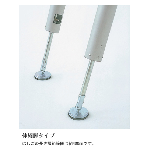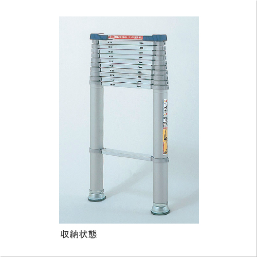 自在に伸縮して収納・持ち運びに便利なはしごです。伸縮自在脚タイプです。 [サイズ]保管収納寸法:長さ1.00m、幅490mm、奥行95mm [本体重量]13.5kg [仕上]アルマイト [全長]4.34 〜 4.75m [最大使用質量/使用角度]100/75 [ステップ間隔]355 [踏面幅]50 購入に関する注意事項 代表画像を表示しています。 ご注意 ・材料はすべてアルミ合金製です。 ・運搬諸経費別途お問い合わせください。 ・納期:ご確認ください。