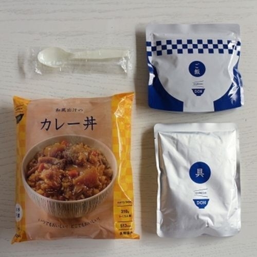 かつお出汁を効かせた和風のカレーです。カレーには珍しい大根も相性抜群。 お米のパウチを容器にして、アルファ化米と出汁スープを混ぜ合わせるだけの簡単調理です。 1食あたり1〜1.5人前とバリューム満点! [名称]カレーどん(どんぶりもののもと・アルファ化米) [原材料] どんぶりもののもと:野菜(玉ねぎ、大根、にんじん、ひらたけ)、鶏肉(ブラジル産)、ソテーオニオン、チキンエキス、かつお風味調味料、砂糖、みりん、セロリ、食用油脂、しょうゆ、チキン風味調味料、にんじんペースト、チャツネ、昆布エキス、カレー粉、味噌、ジンジャーペースト、食塩、かつお節、ガーリックペースト、酵母エキス、香辛料/増粘剤(加工でんぷん)、(一部に小麦・大豆・鶏肉・りんご・ゼラチンを含む) アルファ化米(白飯):うるち米(国産) [内容量]どんぶりもののもと/230g、アルファ化米/80g [栄養成分表示(1食365gあたり)] エネルギー524kcal、たんぱく質21.6g、脂質9.2g、炭水化物91.4g、食塩相当量2.8g [アレルギー物質について] 特定原材料:小麦 特定原材料に準ずるもの:大豆、鶏肉、りんご、ゼラチン [賞味期限]製造より3年間※製造から6ヶ月以内の商品をお届けいたします。 [1袋サイズ]W200×H255 mm 310g [保存方法]直射日光および高温多湿な場所を避けて常温で保存してください。 ※保存年数は製造日より起算しています。 購入に関する注意事項 IZAMESHIの丼シリーズ ごはんもセットになった調理水不要のボリューム満点シリーズ。 セットの具材とご飯を混ぜるだけで簡単にお召し上がりいただけます。 ・水を使わない アルファ化米と出汁スープの袋がセットになっています。 スープをお米に注ぐだけで食べられ、別途お水を用意する必要がありません。 お米のパウチを器にするこができ、スプーンも付属されているので食器が不要です。 ・ボリューム満点 従来のイザメシ、イザメシDeliと比べて、1食あたり1〜1.5人前のボリューム感です。 お子様や女性なら、災害時にシェアしてお召し上がりいただくことも可能です。 お召し上がり方 1.ごはん袋を開封し、脱酸素剤を取り出してください。 2.レトルト袋を開封して中身をごはん袋へ入れ、スプーンでよくかき混ぜてください。 3.ごはん袋のチャックを閉めてお待ち下さい。目安は常温で約60分です。 ※湯せんでレトルト袋を温め、アルファ化米と混ぜた場合、約20分で出来上がります。 ご注意 ・袋が破損すると商品にカビが発生したり、劣化の原因となります。 ・開封後は当日中にお召し上がりください。 ・脱酸素剤は食べられませんので取り除いてください。 ・本品は乳成分、卵、小麦、落花生、そば、えび、かに、大豆、牛肉、豚肉、鶏肉、りんご、ゼラチン、さば、オレンジ、いか、もも、やまいも、バナナ、カシューナッツ、ごまを含む製品と共通の設備で製造しています。 ・商品の仕様・価格は、改良のため予告なく変更する場合があります。変更後は、順次自然切替えとなります。