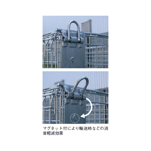 [品番/呼称]SHG-3[外寸法]L853mm、W1053mm、H913mm [内寸法]L720mm、W890mm、H646mm [重量]70kg [材質]スチール [仕上げ]溶融亜鉛メッキ ●金網ピッチ:50mm×50mm×Φ5mm ●耐荷重:1000kgf(吊り上げ時 800kgf) 購入に関する注意事項 特長 ・吊リング付で吊り上げ作業に最適です。 ・吊リング付で吊り上げ作業ができ、資材の保管、運搬、積み降ろしが安 全に行えます。 ・フォークリフトがない現場でも使用でき、ユニック車やクレーンでの荷 降ろし作業が従来より簡単、安全に行えます。 ・段積みが可能なため、スペースを有効に利用できます。4段積みできます。 ・長手方向の前面・後ろ面は、上半分が前に倒れ開閉します。 ・ネームプレートは、SHG-3・SHG-4両方に取付け可能です。 ・HC-4は、柱がない為、折りたたみ効率が良くなります。 ご注意 ・ワイヤー角度は必ず60℃以内、4点で吊り下げてください。 ・扉を開けた状態で吊り下げないでください。 ・規定の重量(容量)以上のものは吊り下げないでください。 ・上部吊リング以外の箇所にワイヤーを掛けて吊り下げないでください。 ・ワイヤーは積載荷重に合ったワイヤーをご使用ください。