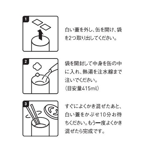 長期保存食「IZAMESHI」の、心まで温まる麺シリーズ。こころに染み入る和風のお出汁とまろやかスパイスがポイント、食べ応えしっかりのカレーうどんに仕上げました。 [名称]麻婆豆腐 [原材料名]めん(小麦粉、食塩、植物油脂、でんぷん)、味付け鶏肉(鶏肉、しょうゆ、清酒、醸造調味料、液体和風だし、砂糖、昆布エキス、かつお節エキス調味料、食塩、酵母エキス)、粉末スープ(米粉、砂糖、食塩、カレー粉、酵母エキス、かつおだし、がらスープの素、オニオンパウダー、粉末しょうゆ、乾燥マッシュポテト、香辛料、乾燥ねぎ)/カラメル色素、加工でんぷん、(一部に小麦・ごま・大豆・鶏肉・豚肉を含む) [内容量]93.8g (めん60g) [殺菌方法](味付け鶏肉)気密性容器に密封し、加圧加熱殺菌 [栄養成分]栄養成分表示1食(83.8g)当たり エネルギー247kcal、たんぱく質8.8g、脂質1.6g、炭水化物49.3g、食塩相当量4.2g [アレルギー物質について] 特定原材料:小麦 特定原材料に準ずるもの:ごま、大豆、鶏肉、豚肉 [賞味期限]製造より3年間※製造から6ヶ月以内の商品をお届けいたします。 [パッケージサイズ]Φ103×H124mm [保存方法]直射日光および高温多湿な場所を避けて常温で保存してください。 ※保存年数は製造日より起算しています。 購入に関する注意事項 「IZAMESHI」の麺シリーズ うどん つるりと美味い本格手延べ麺を使用したうどん。 容器には特殊な缶を使用しているため、熱くならず直接手で持つことができます。 保温性も高いため、最後まであたたかいうどんを召し上がっていただけます。 お召し上がり方 1.白い蓋を外し、缶を開け、袋を2つ取り出してください。 2.袋を開封して中身を缶の中に入れ、熱湯を注水線まで注いでください。(目安量415ml) 3.すぐによくかき混ぜたあと、白い蓋をかぶせ10分お待ちください。もう一度よくかき混ぜたら完成です。 ご注意 ・開缶時やお召し上がりの際には缶ぶたや缶の開口部の切り口で手や口を切らないよう十分にご注意ください。 ・電子レンジ調理不可。 ・直接火にかけないでください。 ・熱湯をご使用の際は、やけどなどに十分ご注意ください。 ・開缶後は賞味期限にかかわらずお早めにお召し上がり下さい。 ・商品の仕様・価格は、改良のため予告なく変更する場合があります。変更後は、順次自然切替えとなります。 <お召し上がり時のご注意> ・麺がほぐれにくい場合がありますが、品質上問題はございません。 ・粉末スープが底にたまりやすいので召し上がる前によくかき混ぜてください。 ・ごみの分別は市区町村の定める区分に従ってください。