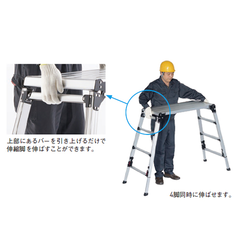 四脚アジャスト式(上部操作)アルミ足場台 DXJ-W6908A